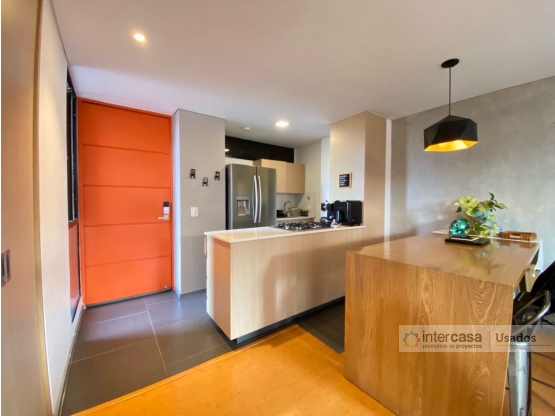 Apartamento con 2 habitaciones en Loma de Las Brujas, Envigado, con un área total construida de 93m2 y una altura de 2.40mts. En unidad de ingenioso diseño en Envigado en una de sus lomas características, iluminado con sus ventanas completas Piso-Techo y amplio estudio o biblioteca, 2 baños completos, un vestier, cocina abierta integral a gas, horno, calentador de gas,se puede instalar campana, lavadero